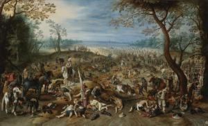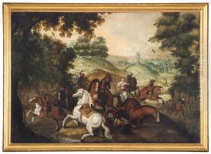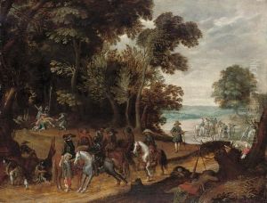 A Wooded Landscape With A Hunting Party, A Castle Beyond