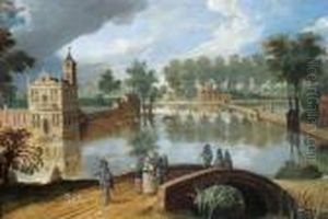 Elegante Assemblee Sur Un Pont Enjambant Les Douves D'un Chateau Renaissance