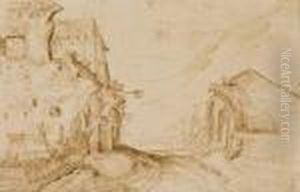 Ruines Antiques, Rue Dans Un Village Avec Un Arc Rompu Numerote '14'