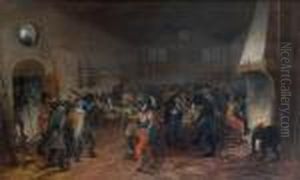 A Singerie With Monkeys In A Guardroom Taking A Cat Into Arrest,others Playing Backgammon Near The Fire Place