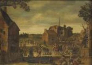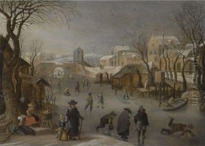 Allegorie De L'hiver: Promeneurs Et Patineurs Dans Une Ville Sous La Neige