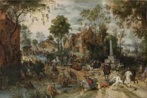 Tree-filled Landscape Near A Village With Peasants At Work In The Fields