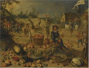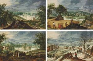 An Allegory Of Autumn: A Farmer Harrowing A Field While Anothersows, With Peasants Gathering Apples In An Orchard Beyond