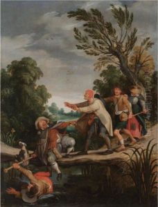 A Landscape With Travellers Ambushed Outside A Small Town