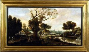 An Extensive Landscape With A Village Kermesse