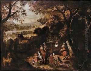 A Landscape With An Elegant Hunting Party