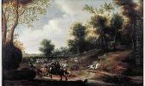 A Cavalry Engagement In A Landscape