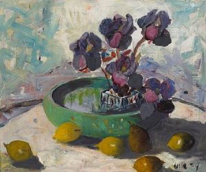 Irises And Fruit (+ Sun-washed Homes On A Hill, Verso)