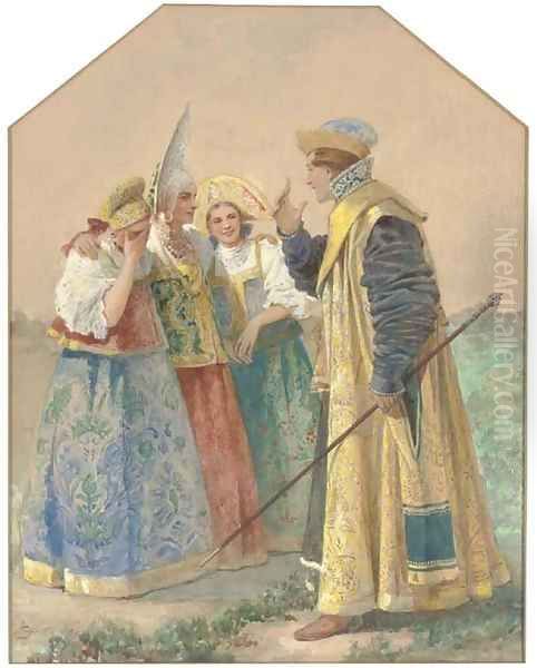 Bring the timeless beauty of Sergei Solomko's A flirtatious boyar into your home with a handmade oil painting reproduction. Carefully recreated on canvas by skilled artists using traditional techniques, this piece captures the delicate brushwork, subtle light, and vibrant color of the original masterpiece. With museum-level quality and rich texture, it brings elegance and artistic depth to any space. Enjoy free shipping and make this masterpiece a part of your personal collection.