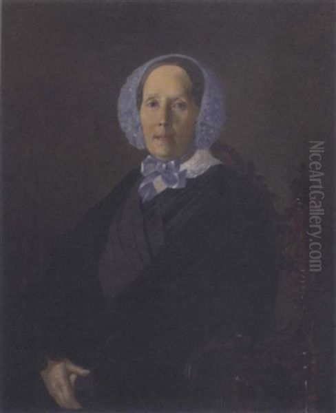Portait Of A Lady, Seated, In A Blue Bonnet And Black Cloak