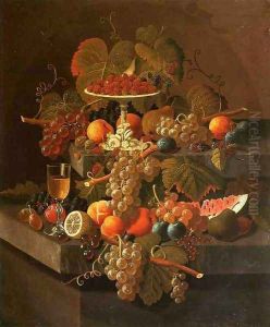 Fruit Still Life with Wine Glass in a Landscape Date unknown