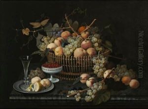 Elaborate Still Life With Silver Basket Of Plums