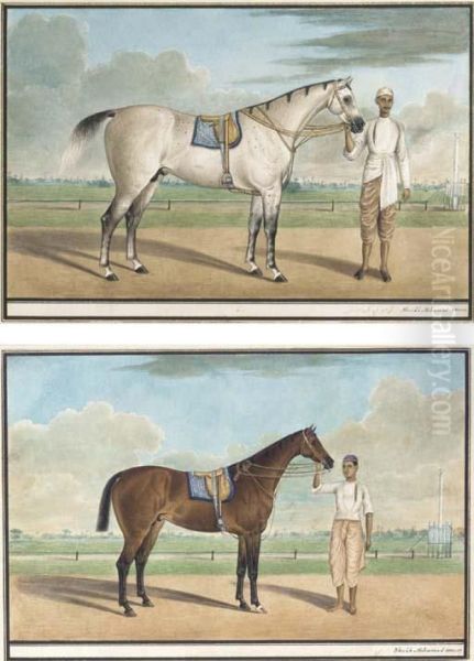 A White Stallion With A Groom; And A Bay Horse With Groom