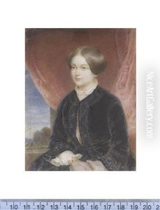 Portrait Of A Young Woman Seated Before Crimson Swagged And Trasseled Drapery