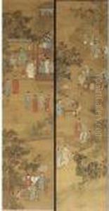 A Framed Silk Painting Of Landscape Motif, After Shen