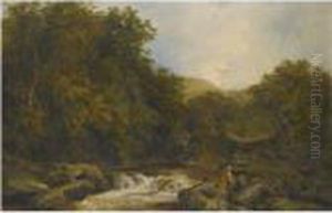 Figures And Cattle In A Mountain River Landscape