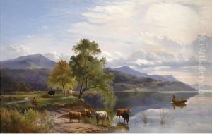 Cattle Watering On The Banks Of A Loch