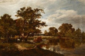 Cattle Watering In A Highland Landscape With A Figure Looking On