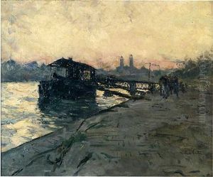Le Vapeur. Huile Sur Toile Signee En Bas A Gauche