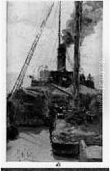 Le Vapeur. Huile Sur Toile Signee En Bas A Gauche