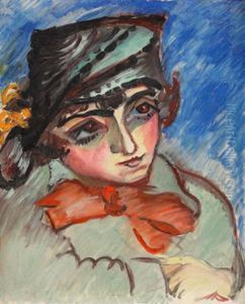 Berthe Med Rod Rosett Oil Painting by Sigrid Hjerten