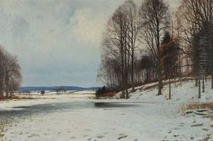 En Mand Ved En Tilfrossen So I Et Snelandskab, Antagelig Fra Fuglsangsoen I Dyrehaven