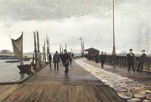 Helsingors Skibsbro. Aftenstemning Ved Havnen