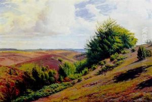 Landskab Med Lyngklaedte Bakker