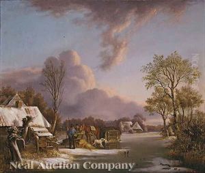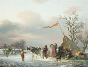 Skaters And A Horse Drawn Sledge Near A Koek En Zopie