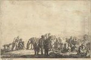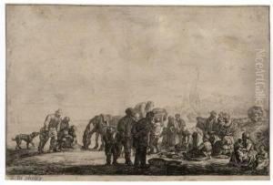 A Beach Scene On The North Sea Coast Of Holland, With Fishermen Displaying Their Catch