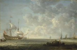 The Squadron Of Admiral Maarten Van Tromp Preparing To Make Sail, The Flagship Aemilia Firing A Salute For The Admiral In His Barge