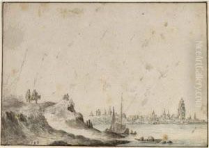 A Dutch Three-master And Other Shipping In A Breeze, A City In Thedistance