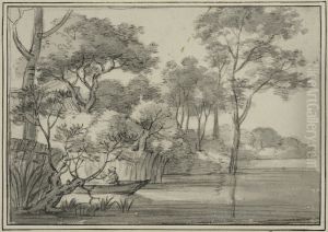 A River Landscape With The Entrance To A Harbour, A Fisherman In A Small Boat With Lobster Pots And A Sailing Boat