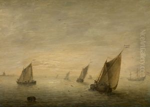 A View Of The Coast Near Egmond, With Fishing Boats Returning From The Catch And A Busy Fish Market At The Foot Of A Dune