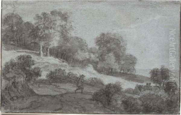 View Of A Wooded Valley With A Peasant Returning Home