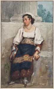 Two Young Boys, The One On The Left Wearingblue Smock With Puffed Sleeves And White Lace Falling Collar Tiedwith A Black Bow Over White Trousers, A White Sailor Cap With Blueribbons Held In His Left Hand, The One On The Right Wearing Brownsmock With Butto