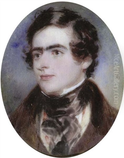 A Young Gentleman In Brown Coat, Buff Waistcoat And Brown Cravat; Sky Background