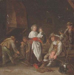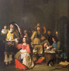 A Guardroom Interior With Soldiers Playing Cards