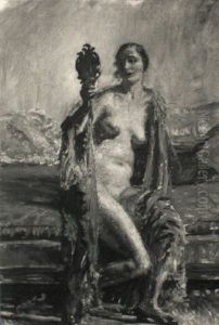 A Lady Seated On A Sofa- A Study