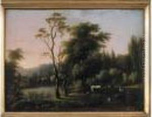 An Italianate Wooded Landscape With Peasants And Their Flockresting By A Path