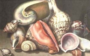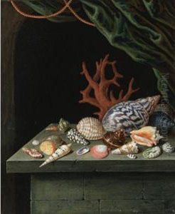 Still Life With A Globe, Books, Shells And Corals Resting On A Stone Ledge