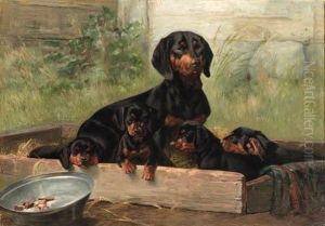 A Dachshund And Her Puppies