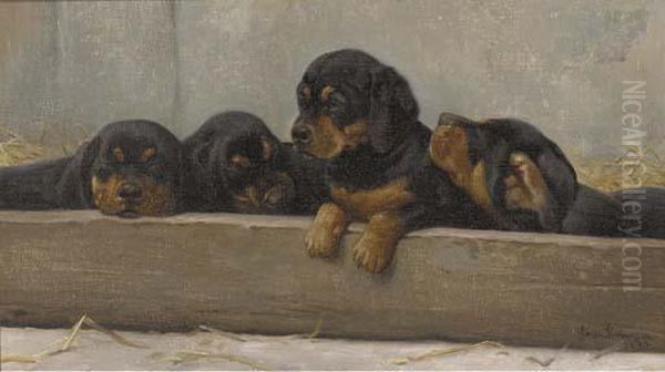 Bring the timeless beauty of Simon Simonson's Puppies into your home with a handmade oil painting reproduction. Carefully recreated on canvas by skilled artists using traditional techniques, this piece captures the delicate brushwork, subtle light, and vibrant color of the original masterpiece. With museum-level quality and rich texture, it brings elegance and artistic depth to any space. Enjoy free shipping and make this masterpiece a part of your personal collection.