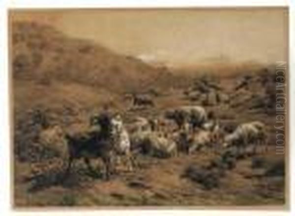A Shepherdess With Cattle In A Hilly Landscape