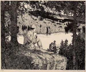Waldlandschaft Mit Hirtin Und Ziegen Am Bach
