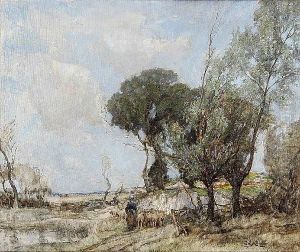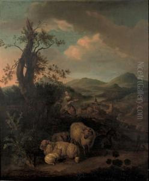 A Wooded Landscape With A Shepherdess And Her Flock
