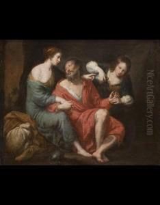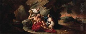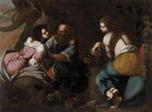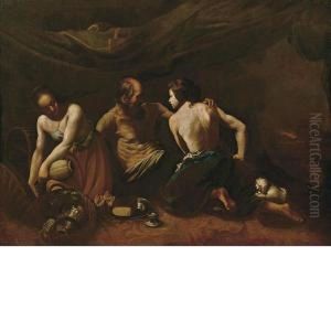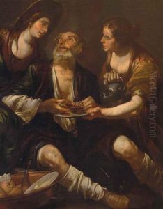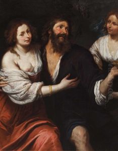 Lot E Le Figlie Oil Painting by Simone Cantarini (Pesarese)