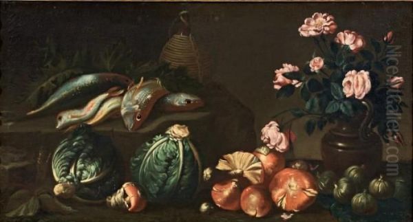 Natura Morta Con Fiori, Ortaggi E Pesci