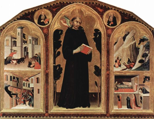 Bring the timeless beauty of Simone Martini's Stehender Augustinus, dem ein Engel ins Ohr flustert, Aussentafeln: Szenen mit Wunderheilungen des Hl. Augustinus into your home with a handmade oil painting reproduction. Carefully recreated on canvas by skilled artists using traditional techniques, this piece captures the delicate brushwork, subtle light, and vibrant color of the original masterpiece. With museum-level quality and rich texture, it brings elegance and artistic depth to any space. Enjoy free shipping and make this masterpiece a part of your personal collection.