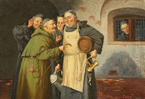 Bring the timeless beauty of Simony Jensen's Cellar scene with happy monks. into your home with a handmade oil painting reproduction. Carefully recreated on canvas by skilled artists using traditional techniques, this piece captures the delicate brushwork, subtle light, and vibrant color of the original masterpiece. With museum-level quality and rich texture, it brings elegance and artistic depth to any space. Enjoy free shipping and make this masterpiece a part of your personal collection.